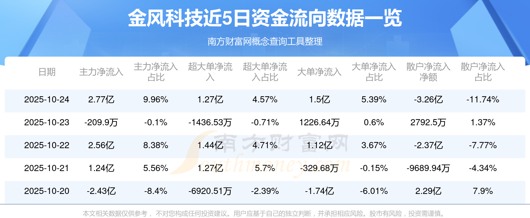 近5日資金流向一覽見下表:
