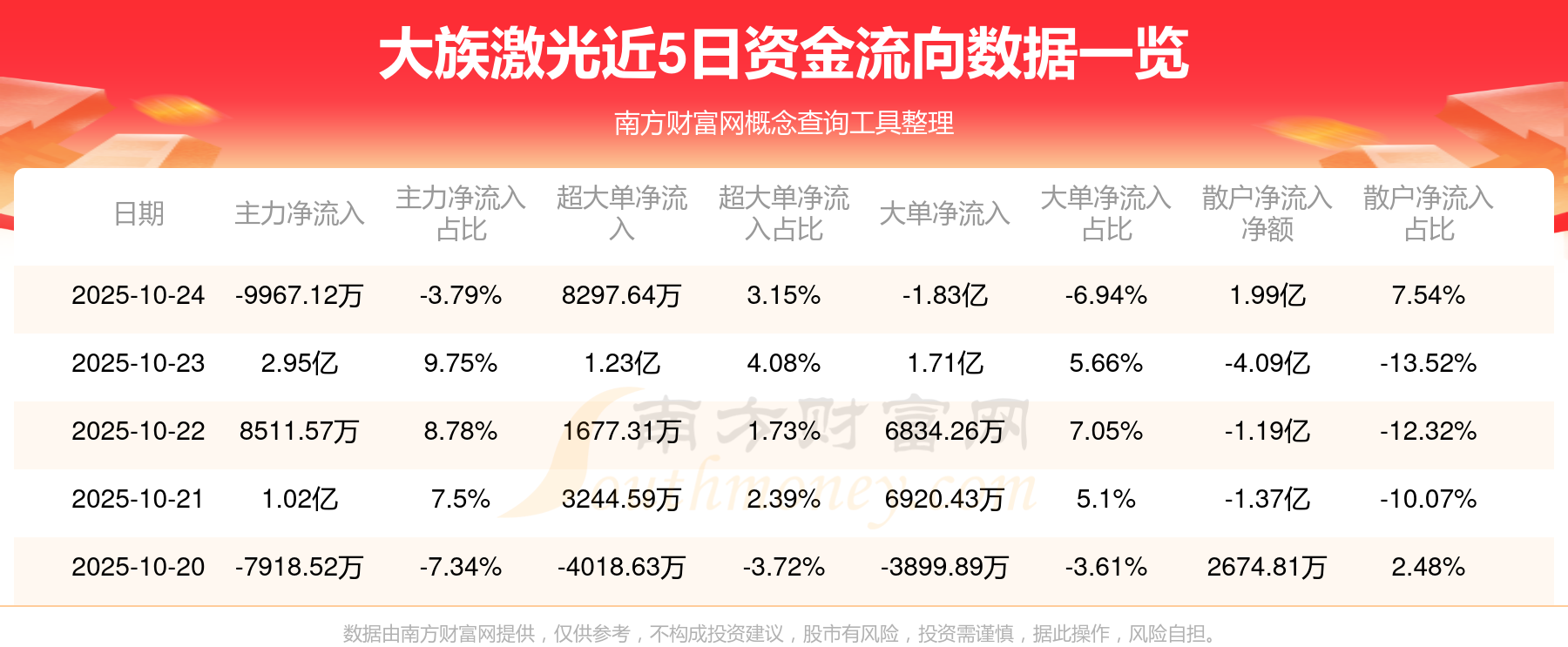 近5日資金流向一覽見下表: