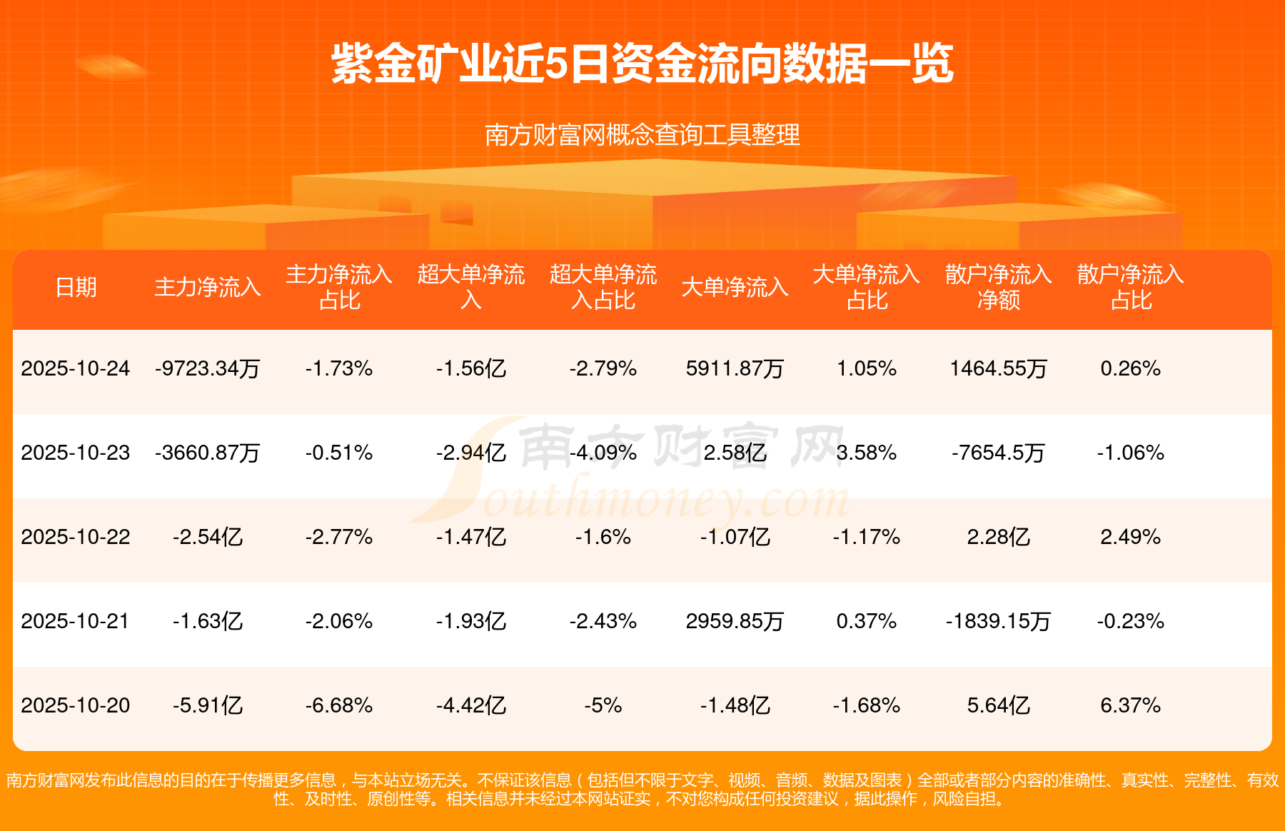 10月24日消息,紫金礦業(yè)資金凈流出9723.34萬(wàn)元,超大單凈流出1.56億元,換手率0.9%,成交金額55.7億元。
