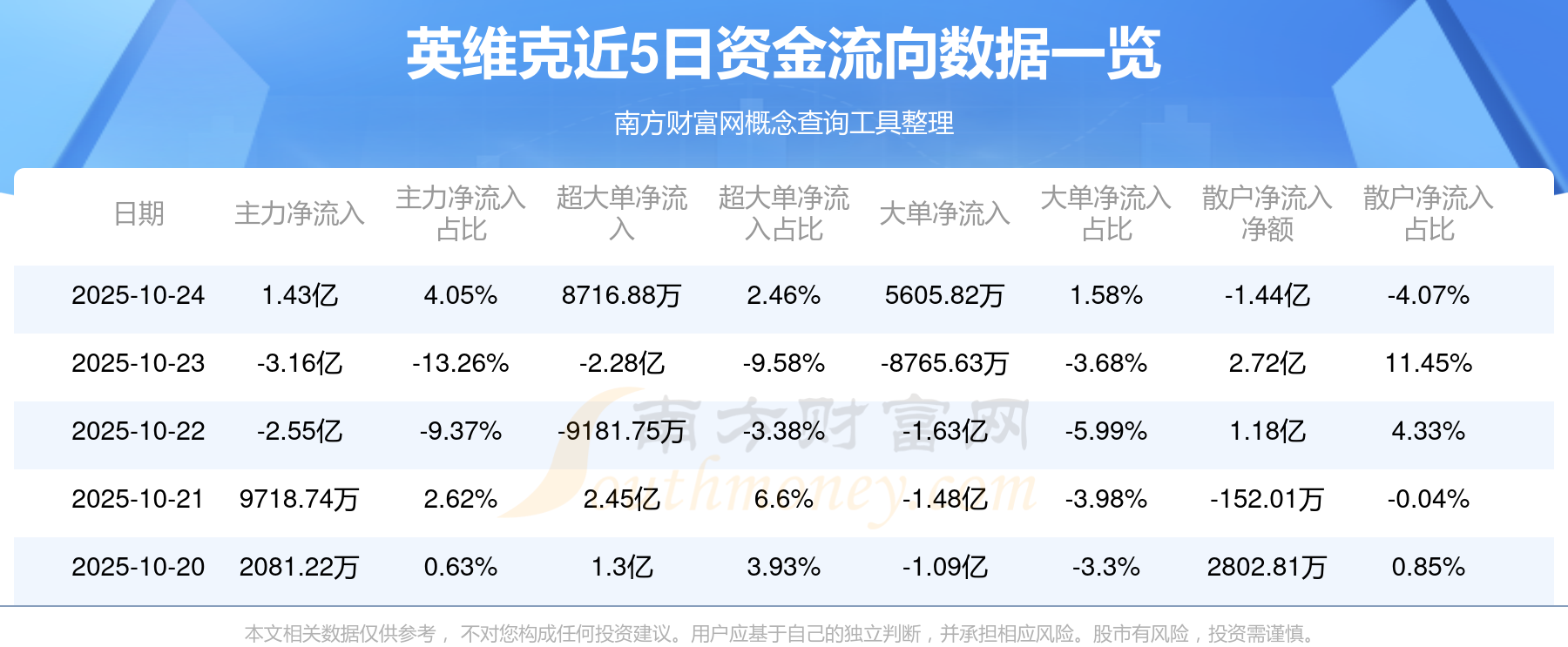 10月24日消息,英維克主力凈流入1.43億元,超大單凈流入8716.88萬元,散戶凈流出1.44億元。