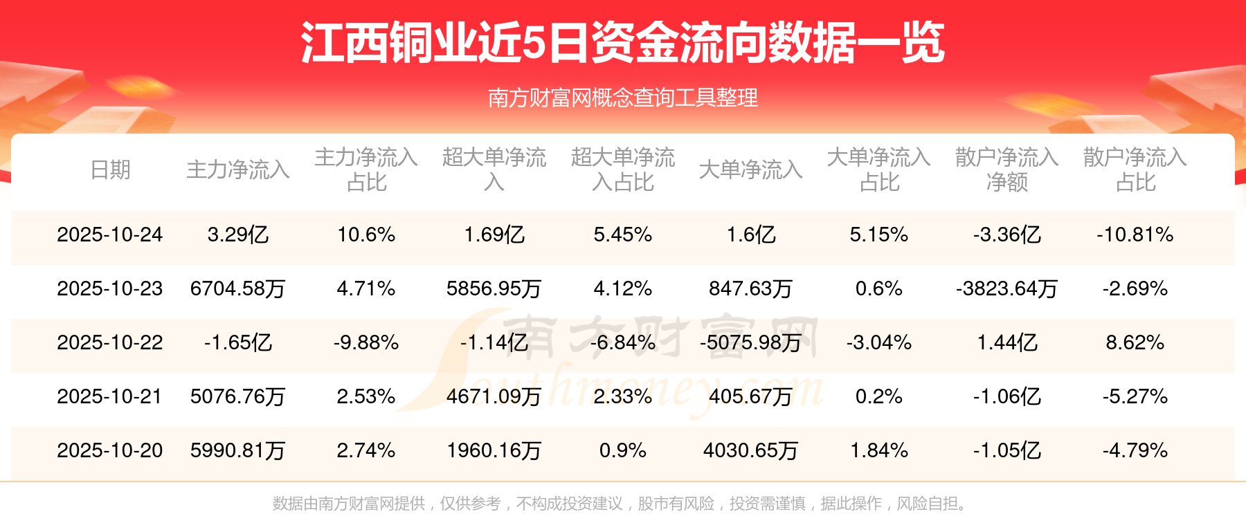 10月24日消息,江西銅業(yè)主力凈流入3.29億元,超大單凈流入1.69億元,散戶凈流出3.36億元。