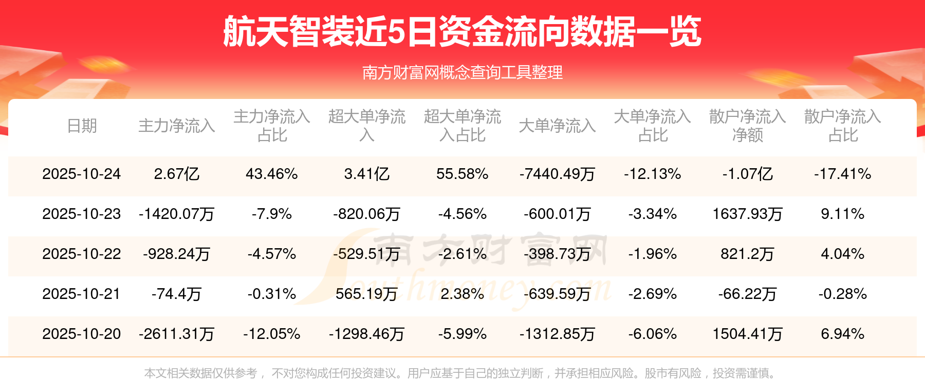 10月24日消息,航天智裝10月24日主力資金凈流入2.67億元,超大單資金凈流入3.41億元,大單資金凈流出7440.49萬(wàn)元,散戶資金凈流出1.07億元。