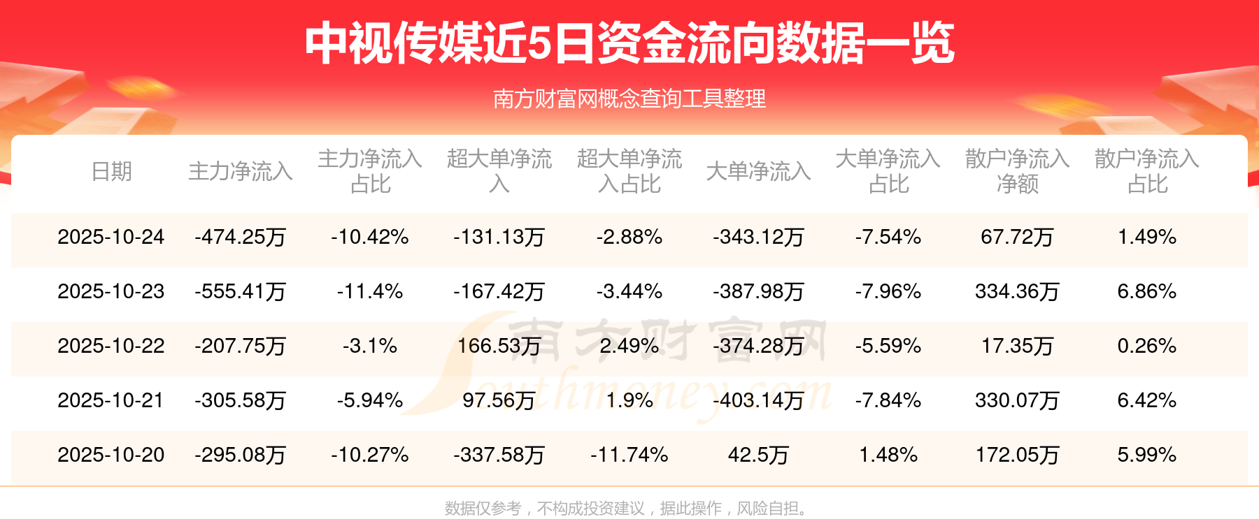 近5日資金流向一覽見下表: