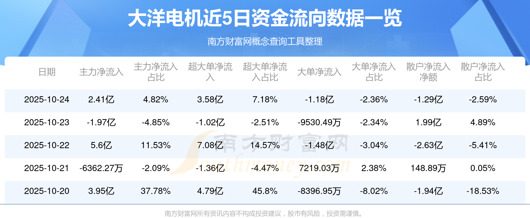 10月24日該股主力資金凈流入2.41億元,超大單資金凈流入3.58億元,大單資金凈流出1.18億元,中單資金凈流出1.11億元,散戶資金凈流出1.29億元。