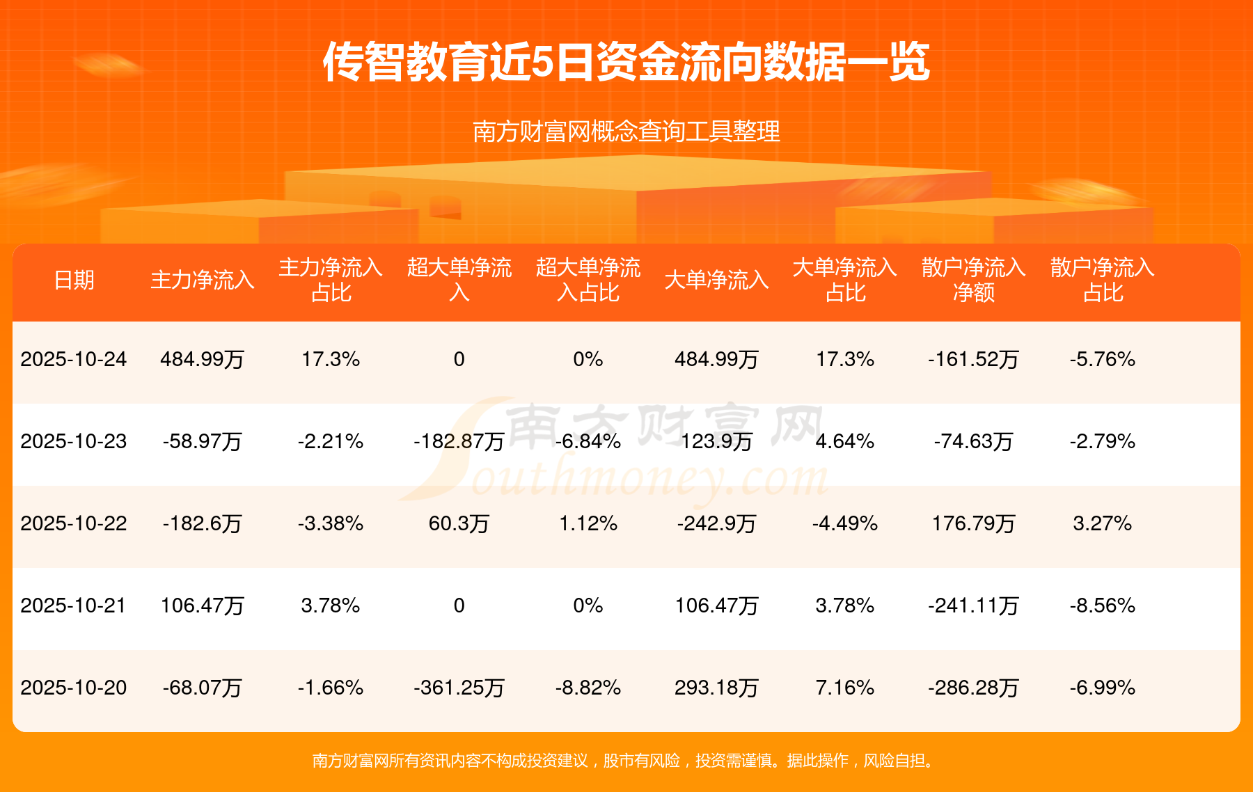 10月24日消息,ST傳智資金凈流入484.99萬元,換手率1.51%,成交金額2802.83萬元。