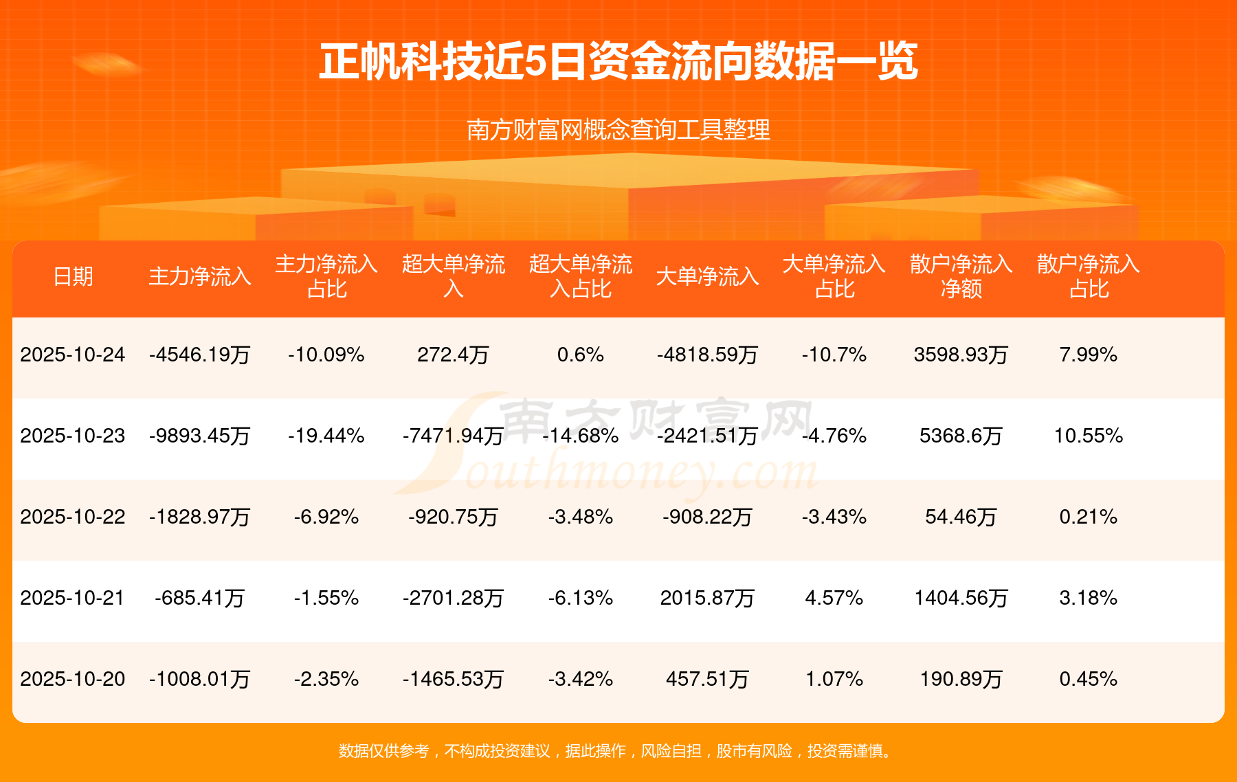 近5日資金流向一覽見下表: