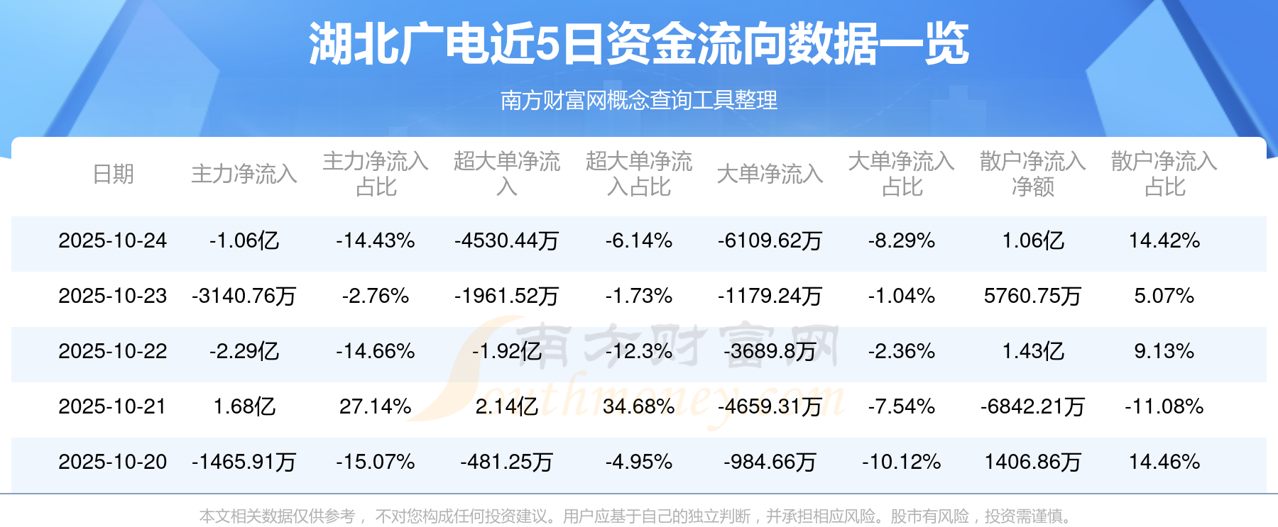 10月24日消息,湖北廣電10月24日主力凈流出1.06億元,超大單凈流出4530.44萬元,大單凈流出6109.62萬元,散戶凈流入1.06億元。