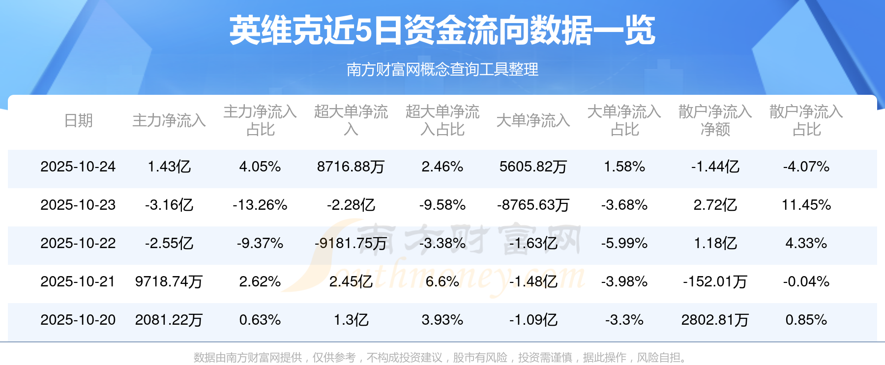 10月24日消息,英維克主力資金凈流入1.43億元,超大單資金凈流入8716.88萬(wàn)元,散戶資金凈流出1.44億元。