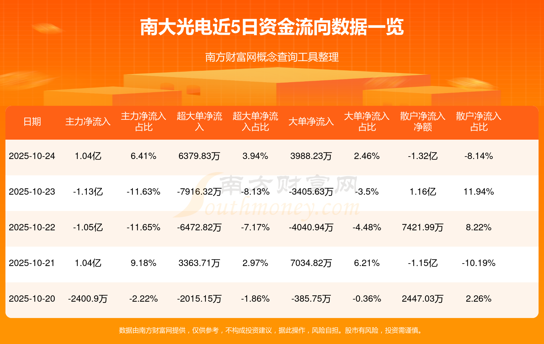 10月24日消息,資金凈流入1.04億元,超大單凈流入6379.83萬元,成交金額16.18億元。