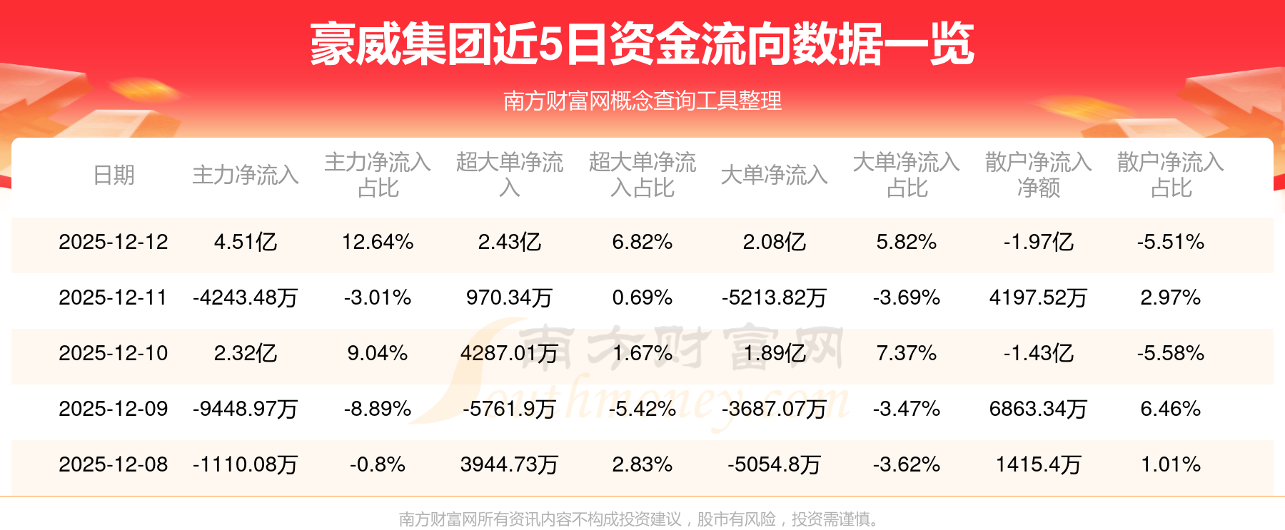 12月12日消息,豪威集團(tuán)主力凈流入4.51億元,超大單凈流入2.43億元,散戶凈流出1.97億元。
