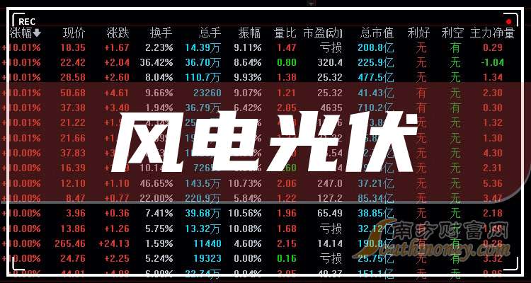 據(jù)南方財富網(wǎng)概念查詢工具數(shù)據(jù)顯示,風(fēng)電光伏龍頭公司有: