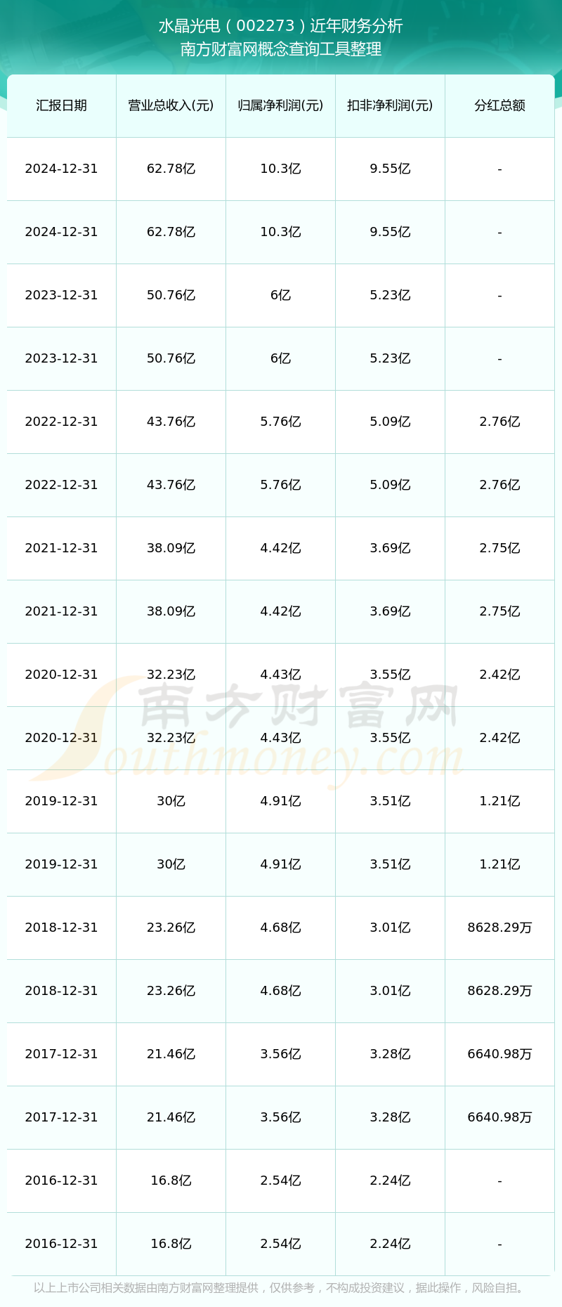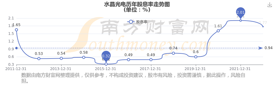 水晶光電最新一次公布的分紅方案為10派2元。本次權(quán)益分派股權(quán)登記日為2023年5月15日,除權(quán)除息日為2023年5月16日,派息日為2023年5月16日。