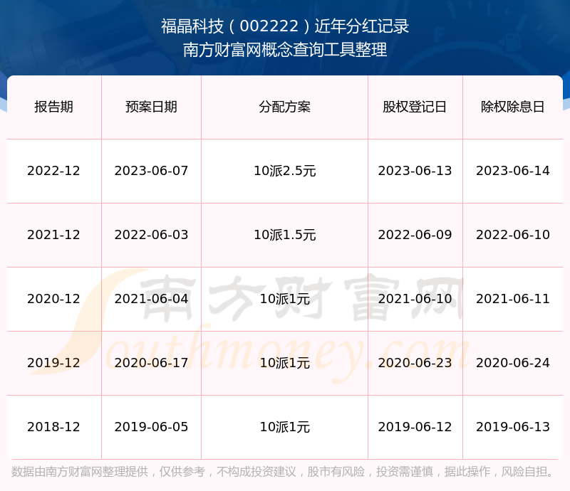 福晶科技最新一次公布的分紅方案:10派2.5元。