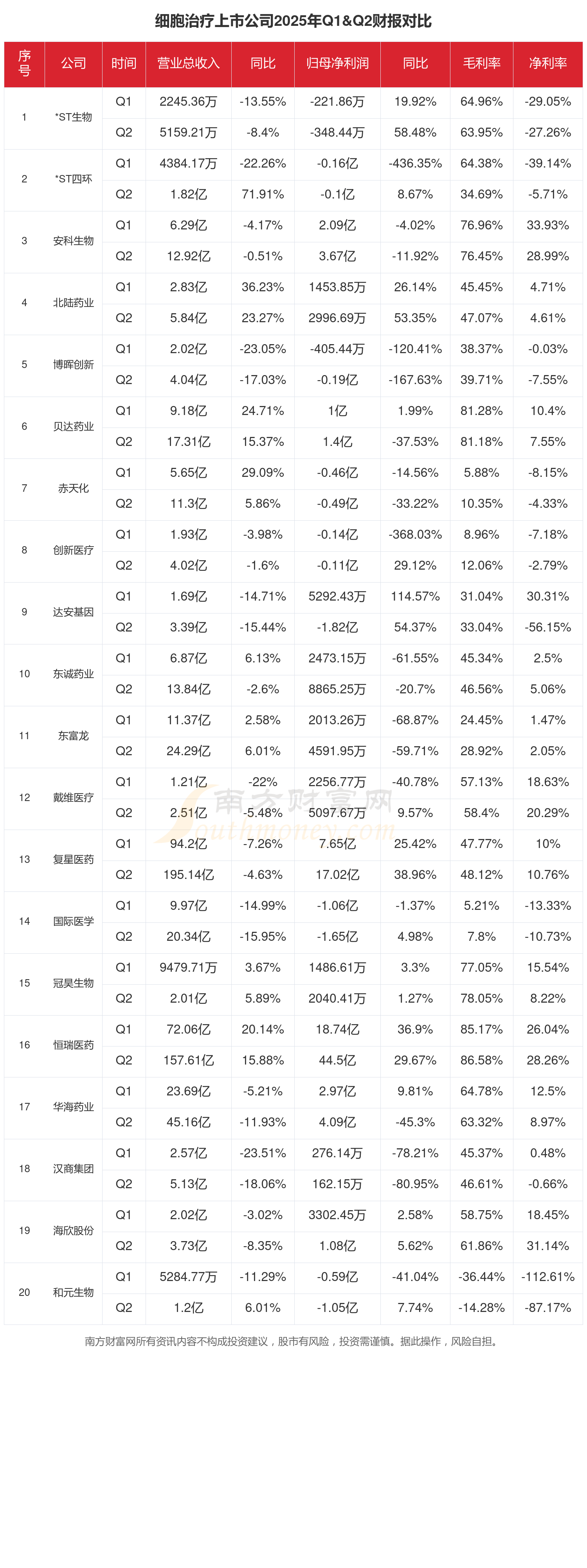 根據(jù)南方財富網(wǎng)概念查詢工具數(shù)據(jù)統(tǒng)計,A股49家細(xì)胞治療相關(guān)上市公司已發(fā)布2025年上半年財報。2025年上半年大家都過得怎么樣?一起來看看吧。