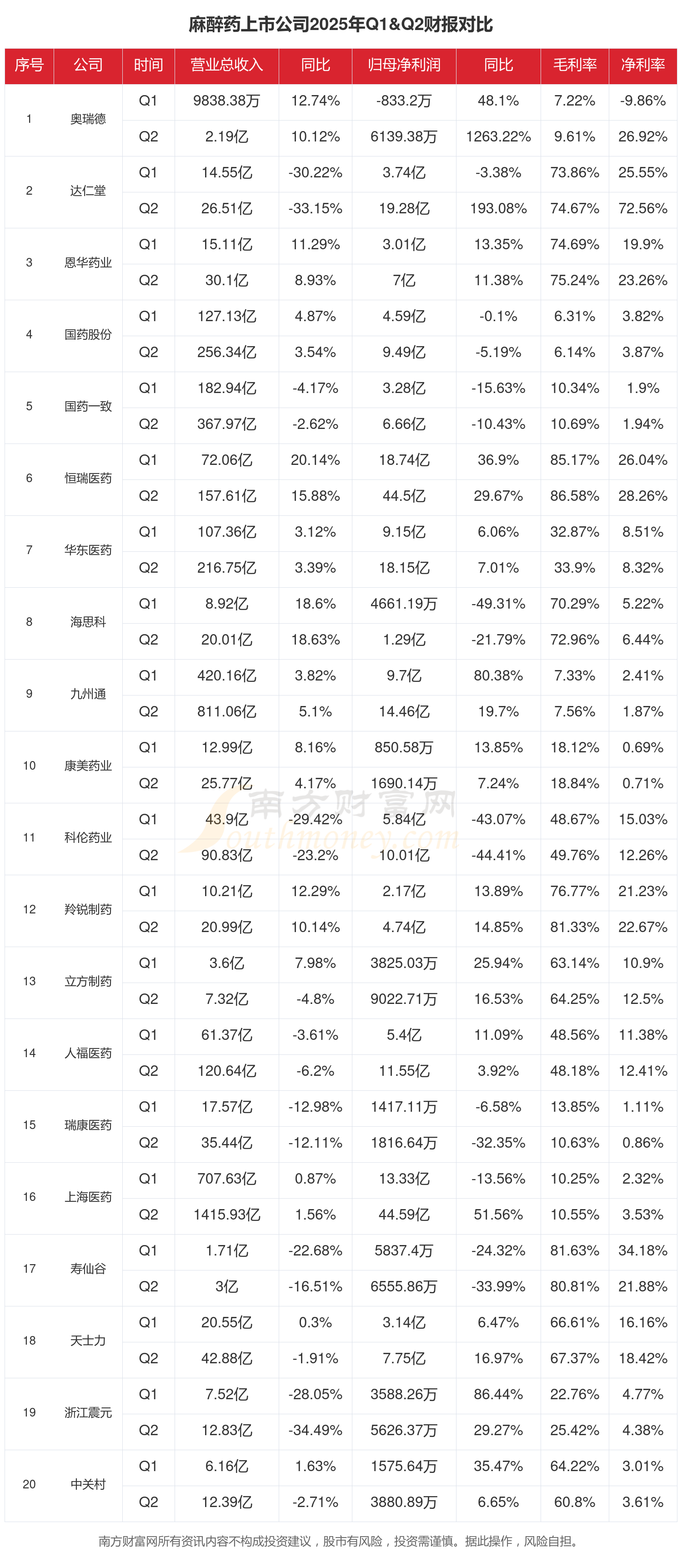 根據(jù)南方財富網(wǎng)概念查詢工具數(shù)據(jù)統(tǒng)計,A股22家麻醉藥相關(guān)上市公司已發(fā)布2025年上半年財報。2025年上半年大家都過得怎么樣?一起來看看吧。