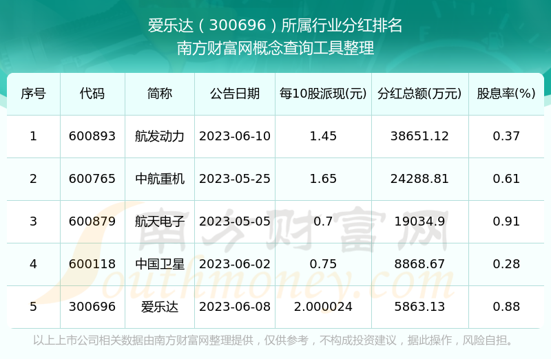 按照南方財富網(wǎng)趨勢選股系統(tǒng)統(tǒng)計,愛樂達所屬行業(yè)為飛機零部件行業(yè),飛機零部件行業(yè)分紅排名情況如下表: