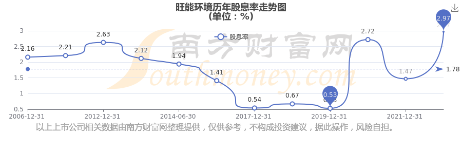 近年旺能環(huán)境年度股息率走勢如下圖:
