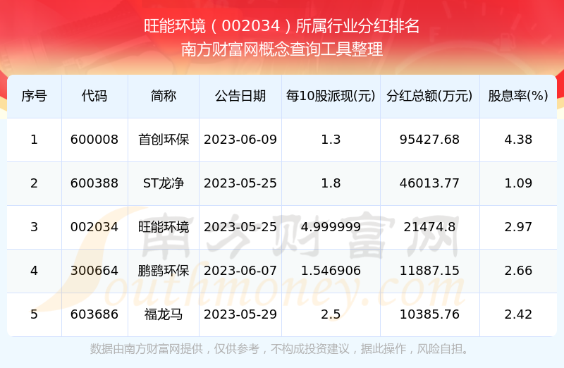 二、旺能環(huán)境002034行業(yè)分紅排名