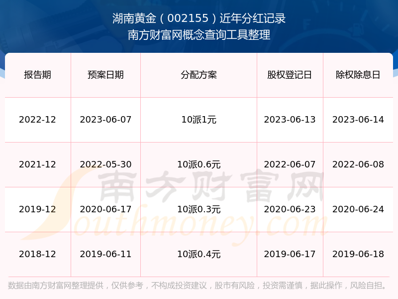 湖南黃金最新一次公布的分紅方案:10派1元。