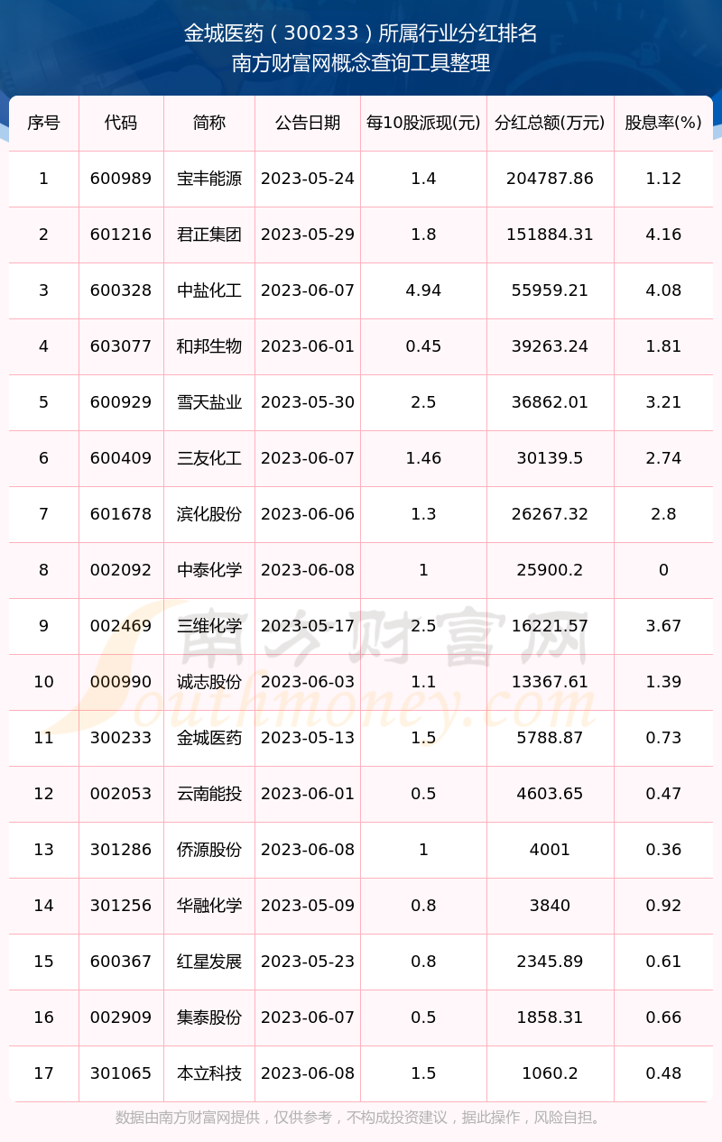二、金城醫(yī)藥300233行業(yè)分紅排名