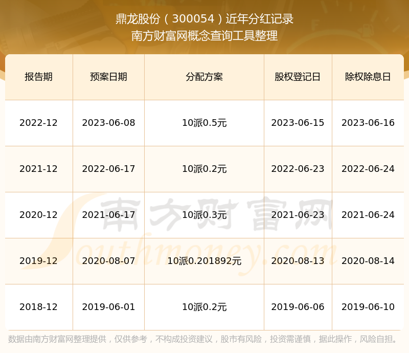 鼎龍股份最新一次公布的分紅方案為10派0.5元。本次權益分派股權登記日為2023年6月15日,除權除息日為2023年6月16日,派息日為2023年6月16日。