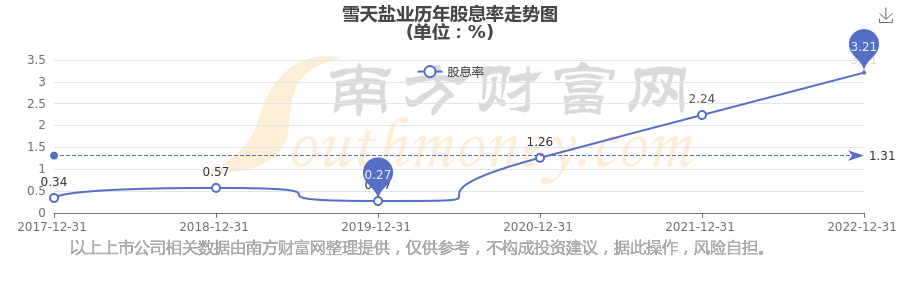 近年雪天鹽業(yè)年度股息率走勢(shì)如下圖: