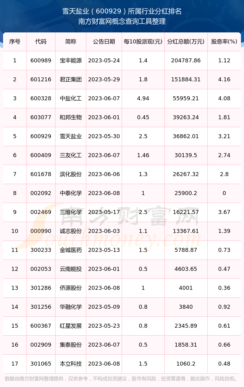 二、雪天鹽業(yè)600929行業(yè)分紅排名