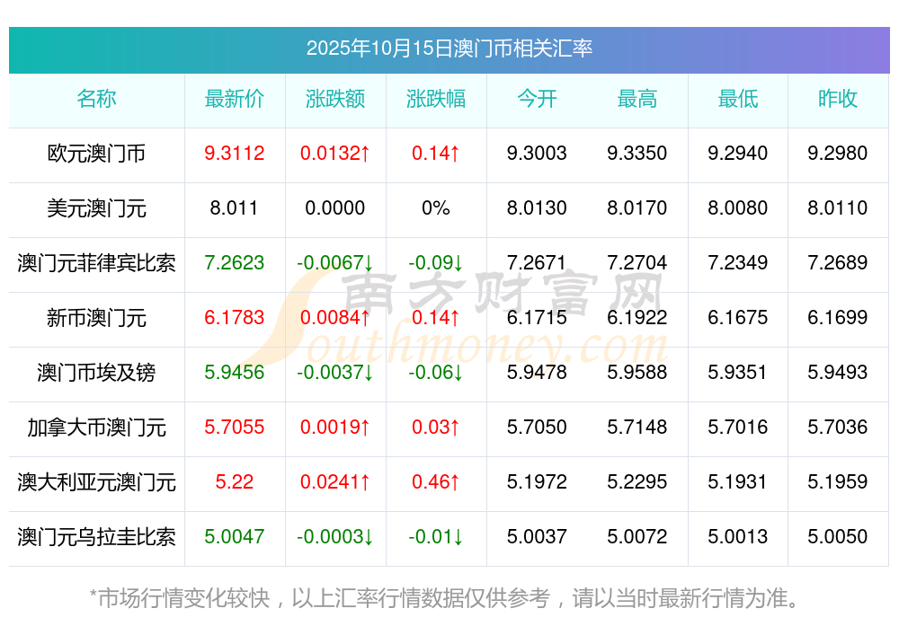 2025年10月15日澳門幣相關(guān)匯率查詢
