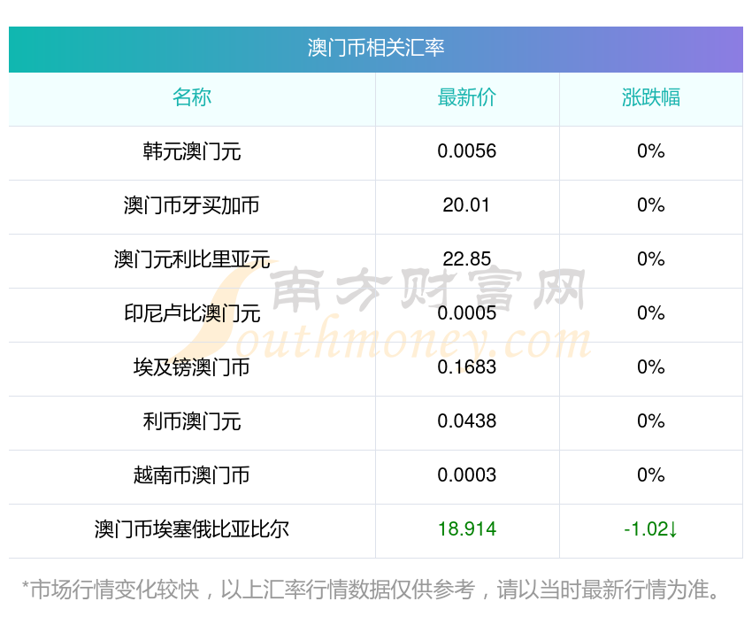 2025年10月26日澳門幣相關(guān)匯率查詢