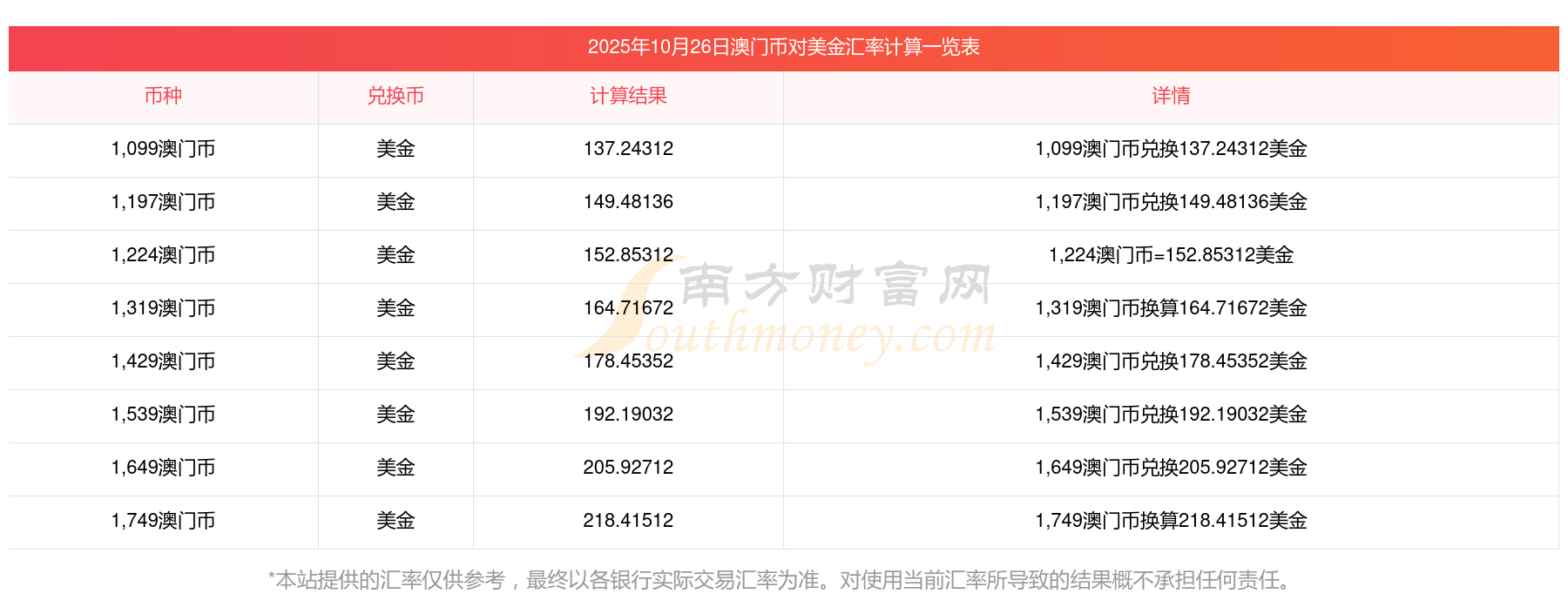 現(xiàn)在1澳門幣與美元的匯率是多少?2025年10月26日