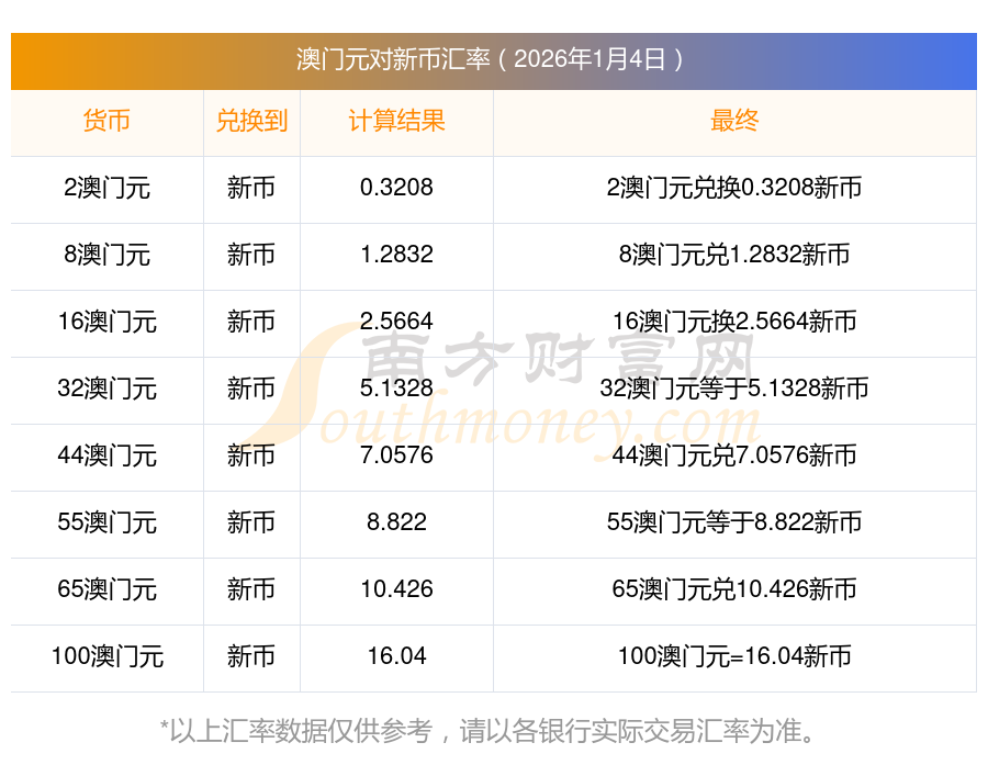 今天澳門元對新幣的匯率多少?2026/01/04