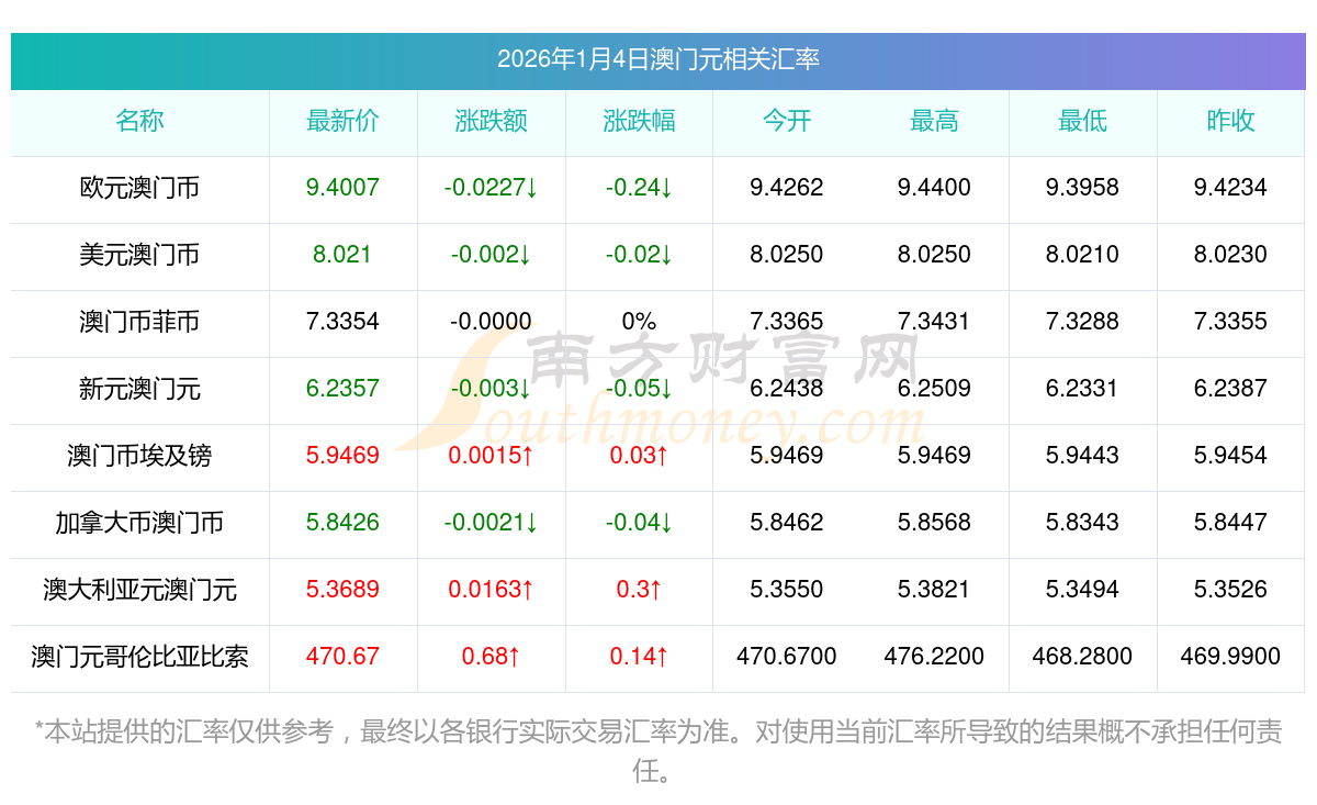 南方財富網(wǎng)為您提供澳門元對新幣匯率最新價格詳情。