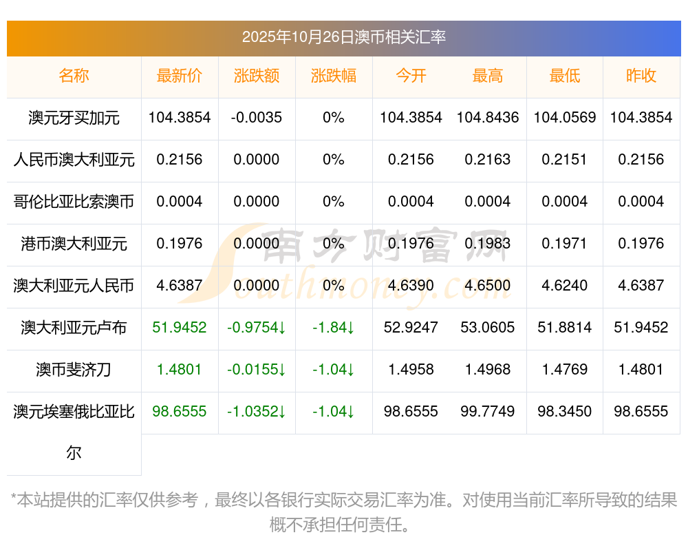 - 現(xiàn)在澳元與阿幣兌入?yún)R率多少?(2025/10/25)