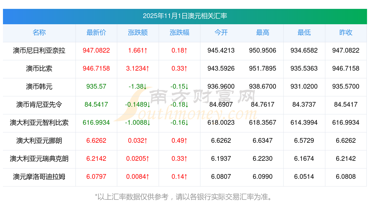2025年11月1日澳元相關(guān)匯率查詢