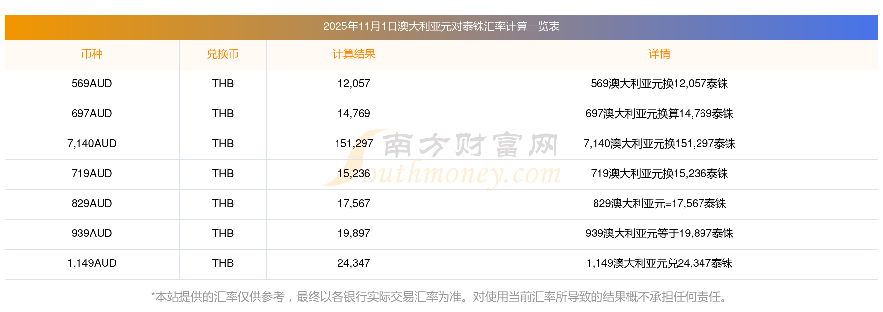 澳大利亞元對泰銖匯率走勢,今日澳大利亞元對泰銖匯率是多少?2025/11/01