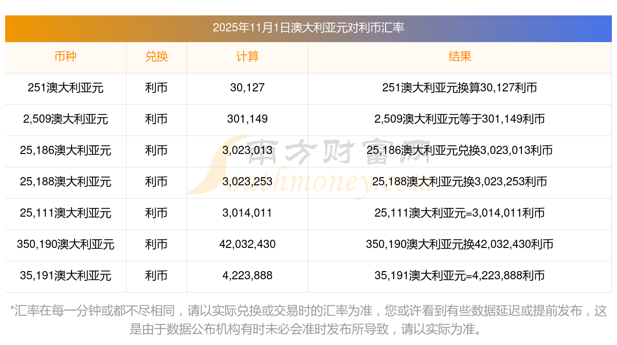 今天210澳大利亞元對(duì)利幣匯率怎么計(jì)算_匯率實(shí)時(shí)查詢(2025/11/01)