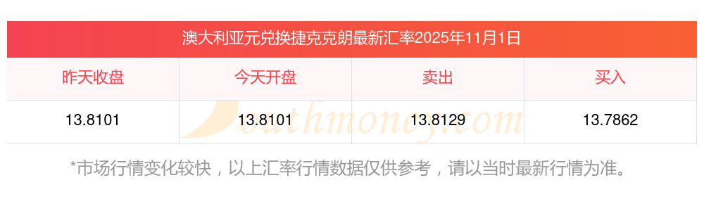 澳大利亞元兌換捷克克朗匯率開盤價多少?今日查詢(2025年11月1日)