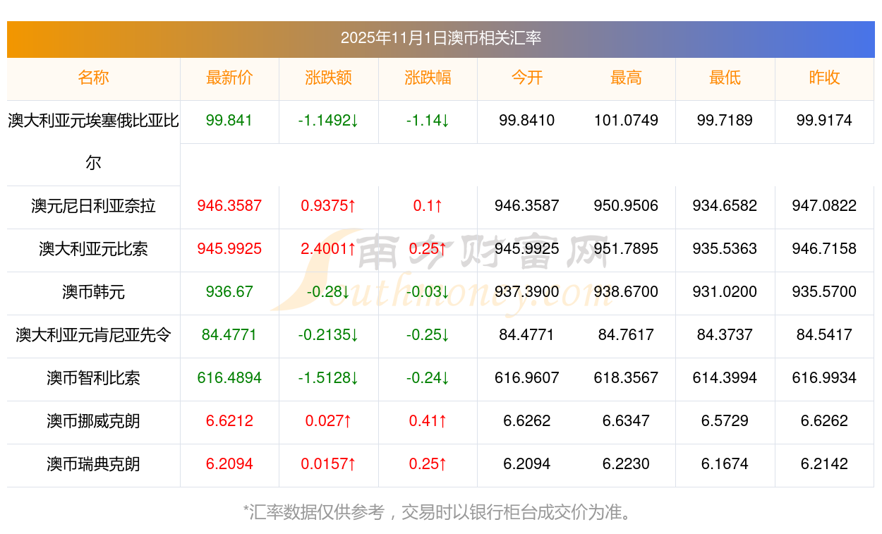 2025年11月1日澳幣相關(guān)匯率查詢