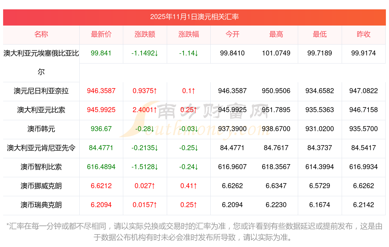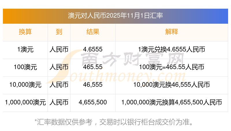 今天購匯查詢:500澳元對人民幣匯率多少?2025-11-1