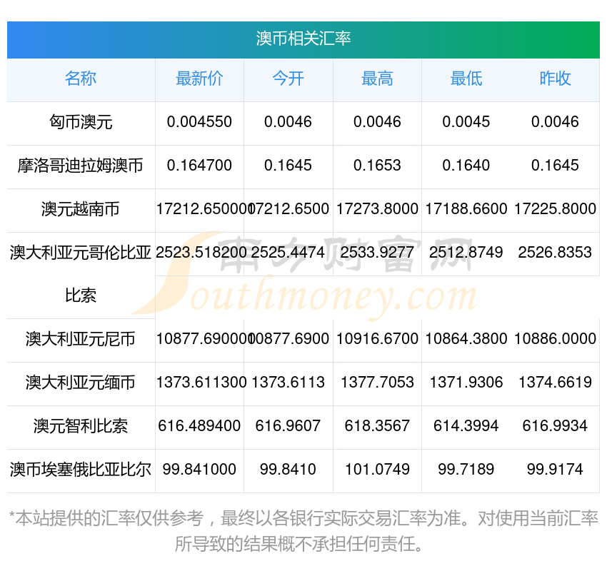 南方財(cái)富網(wǎng)為您提供澳幣對(duì)盧布匯率最新價(jià)格詳情。