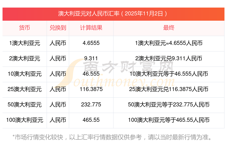 1澳大利亞元對(duì)人民幣多少元?澳大利亞元匯率中間價(jià)11-2