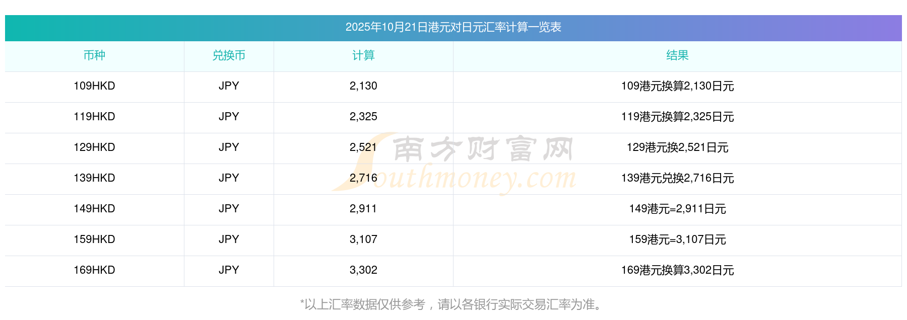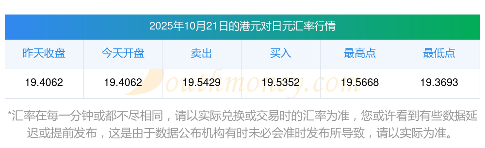 今天匯率調(diào)整 港幣與日元的匯率是多少?2025-10-21