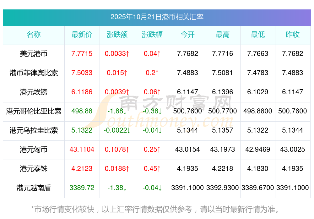 2025年10月21日港幣相關(guān)匯率查詢(xún)