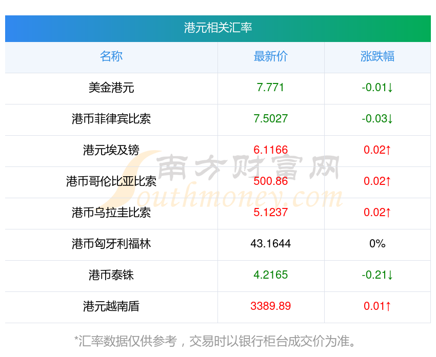 今日一港元能換多少南非蘭特(2025年10月22日)