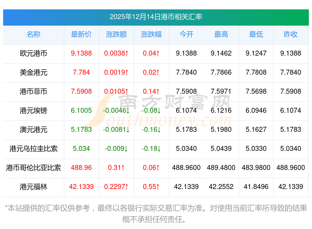 根據(jù)2025年12月14日匯率計(jì)算,HKD兌換CLP匯率最新價(jià)116.938600,今開(kāi)價(jià)116.9386,昨收價(jià)116.9386,最高價(jià)117.6222,最低價(jià)116.7517。