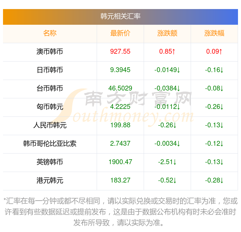 南方財富網(wǎng)為您提供韓元對牙買加幣匯率最新價格詳情。