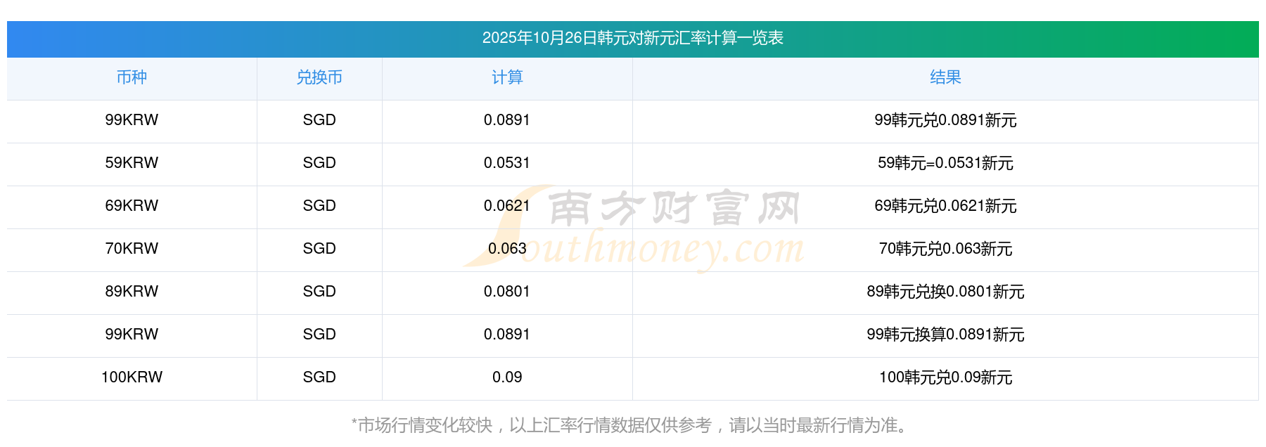 今天匯率多少 | 將9韓元兌換為新元是多少? 2025/10/26
