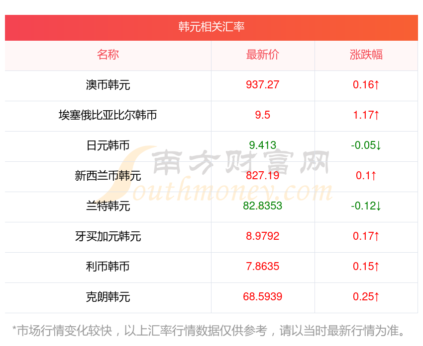 南方財(cái)富網(wǎng)為您提供韓元對(duì)新元匯率最新價(jià)格詳情。