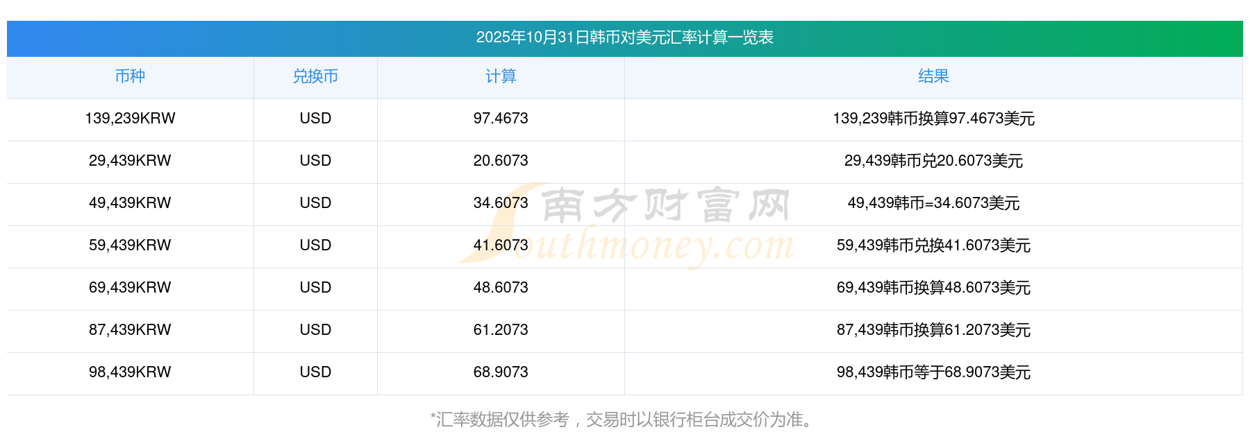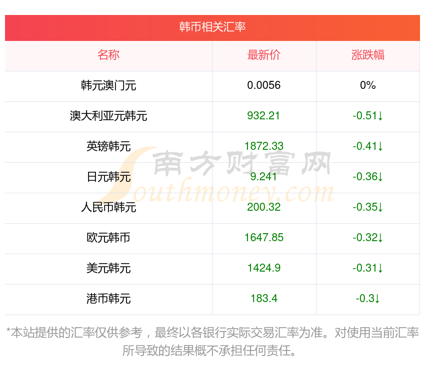 南方財(cái)富網(wǎng)為您提供韓幣對美元匯率最新價(jià)格詳情。