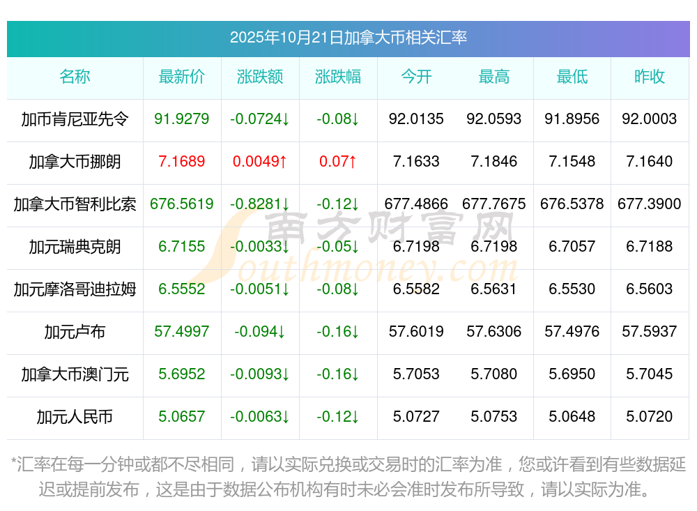 2025年10月21日加拿大幣相關(guān)匯率查詢